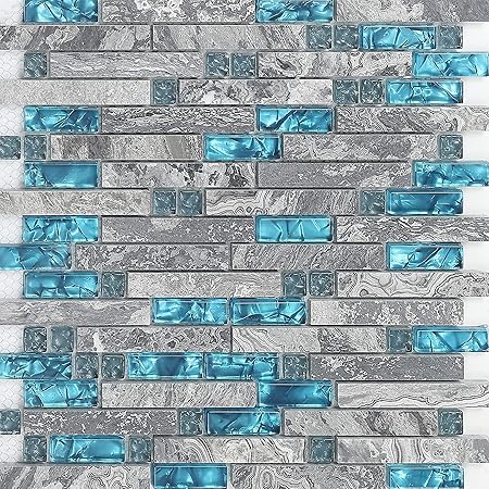 Once ordered, the tile came quickly. Blue resin grey marble stone long strip mashup crystal glass mosaic tile kitchen backsplash bathroom backdrop wall. The owner was responsive and easy to work with. Backsplash tiles elevates your kitchen design to the next level. Teal blue & nature stone grey.